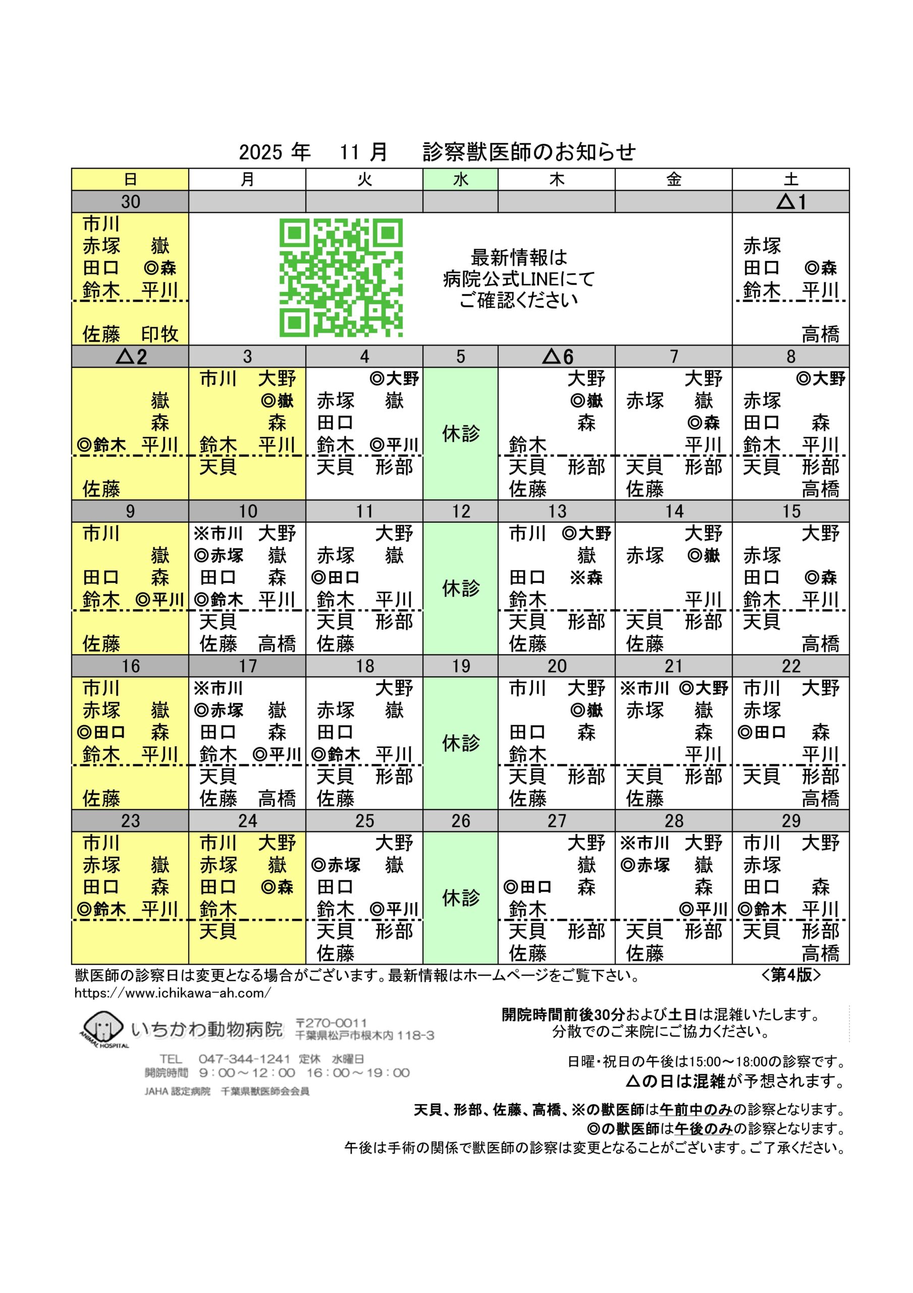 8/1(金)~9/4(木)の期間、赤塚獣医師はお休みとなります。